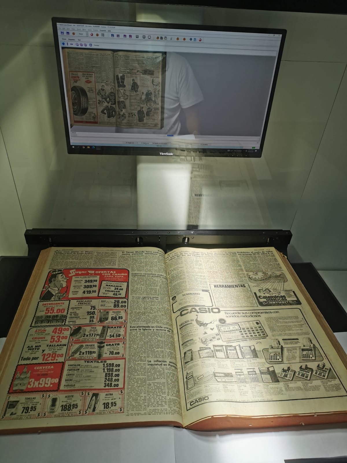 Image Access 的合作伙伴 AyD Asociados 接受了这一挑战,并开发出独特的技 术解决方案,以提供最佳的可读性和图像质量。详尽的质量控制、图像裁剪、重命名、信息整合、云端备份和物理存储库,确保了通过机构在线系统进行访问。日常目标是每天处理12,000页,由九卷组成。生产始于使用 Image Access 的 Bookeye 4 V1A 进行图像采集。现在,我们拥有一个更新的版本,即 Bookeye 5 V1A 扫描仪,它已完全重新设计,非常适合像这样要求严苛的项目。截至本刊发布时,数字化工作已完成至1979年6月。 A&D 每月生成20万到25万页。该项目于去年8月启动,将于今年10月完成。