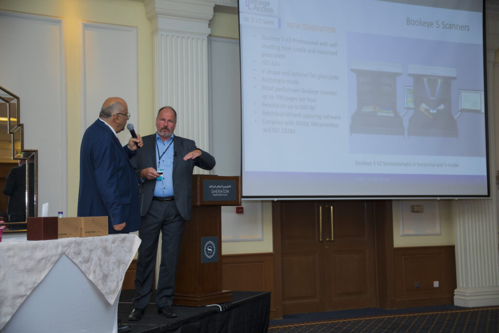 Image Access 国际销售总监 Achim Friender 介绍了来自 Bookeye® 和 WideTEK® 系列扫描仪的最新产品和解决方案,观众对此表现出浓厚兴趣。凭借在海湾地区拥有像 Forefront Technologies 这样强大的合作伙伴,Image Access 在未来处于有利地位。