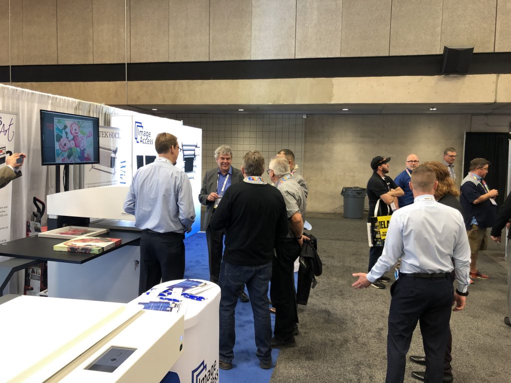 在德克萨斯州达拉斯举行的 2019 年 Printing United 展会期间,Image Access 展位前人潮涌动。