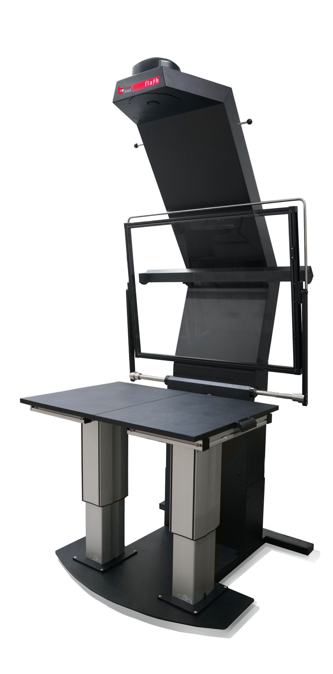 Flash 如何确保用户能够以最舒适、最快速的方式工作?该系统的关键要素之一是 双升降柱,它确保了书籍高度的均匀性。这意味着,无论翻到哪一页,正确的升降柱都会恰好下降足够的距离,以使要扫描的双页表面形成一个精确的水平面。高度补偿可达25厘米。这也是书脊豁免的尺寸,可以适应特别厚的书籍装订。所有这些都确保了同时检测所有区域的图像传感器达到一个水平。电动玻璃板以温和的方式压在原件上,不会产生反射,也不会造成任何损坏,这进一步增强了扫描效果。