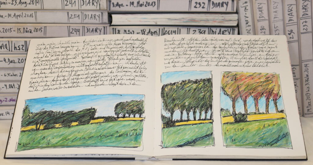 德国日记档案馆(DTA)每年平均收到约200人提供的1,000册独立卷本。其中大多数是手写的原始文献,形式和材质各不相同。为了尽可能温和地在档案库房中保存这些私人历史见证,DTA团队多年来一直致力于将许多文献数字化,并额外制作了装订成册的阅读副本。迄今为止,这项耗时的工作只能依靠一台性能不错的彩色复印机,但它并不真正适用于较厚的书籍和大量的信件及书籍卷宗(见上图)。得益于大量志愿者的投入,我们迄今已成功数字化了总馆藏量的约22%。