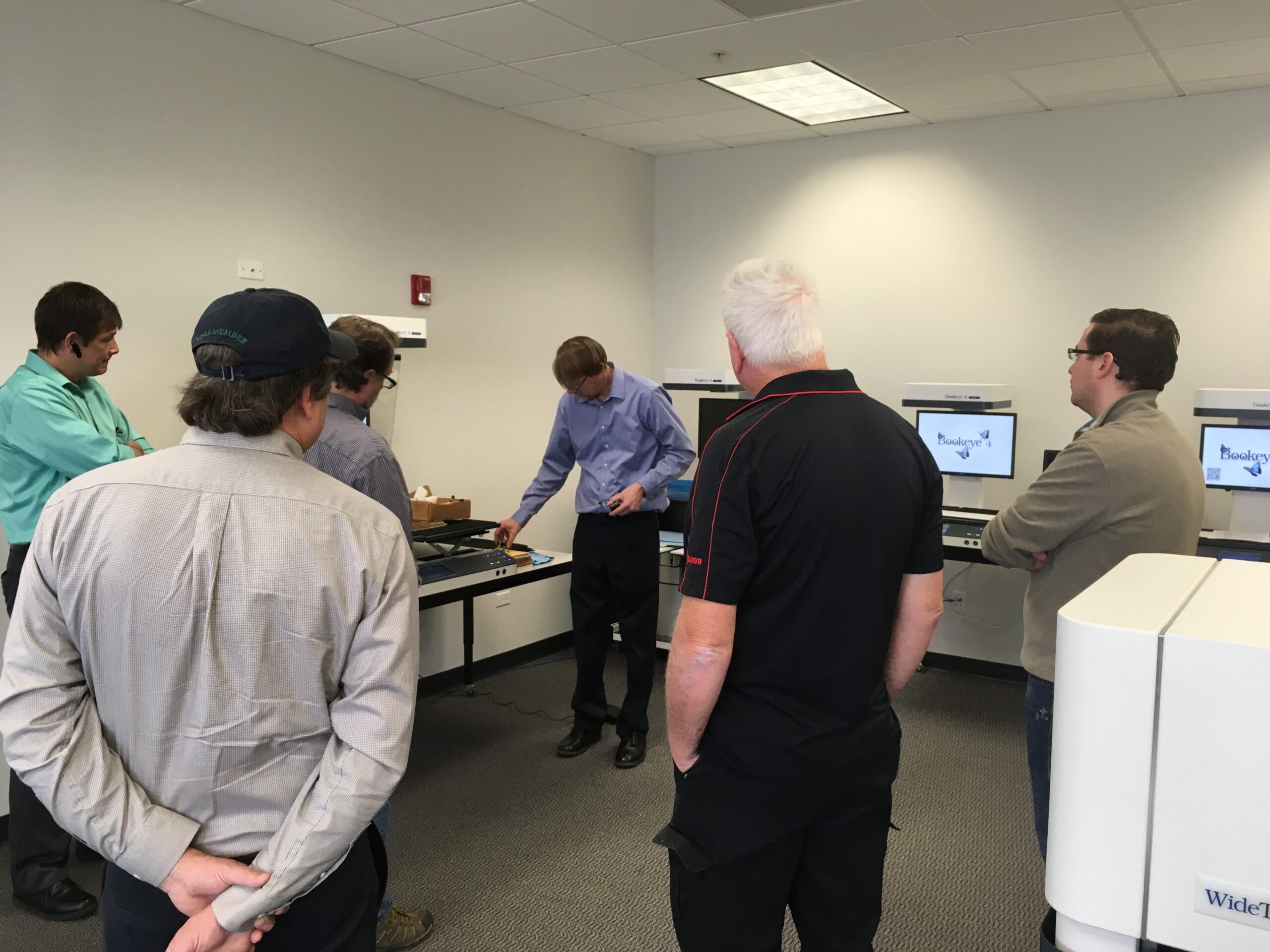 Image Access LP 于 3 月 21 日至 23 日在其位于伊利诺伊州埃尔金的工厂举办了 2018 年三次授权服务提供商培训课程中的第一次。来自加利福尼亚、佛罗里达、弗吉尼亚、纽约和伊利诺伊州的学员们接受了 Jonathan Wenninger 的培训,学习了 WideTEK® 和 BookEye® 扫描仪的所有技术方面知识,包括激动人心的新款 WideTEK 36 ART 大幅面艺术品扫描仪。完成授权服务提供商培训后,学员们获得了为 Image Access 产品提供服务的认证。Image Access 新入职的拉丁美洲客户服务技术员 Octavio Navarro 协助了 Jonathan 的工作。