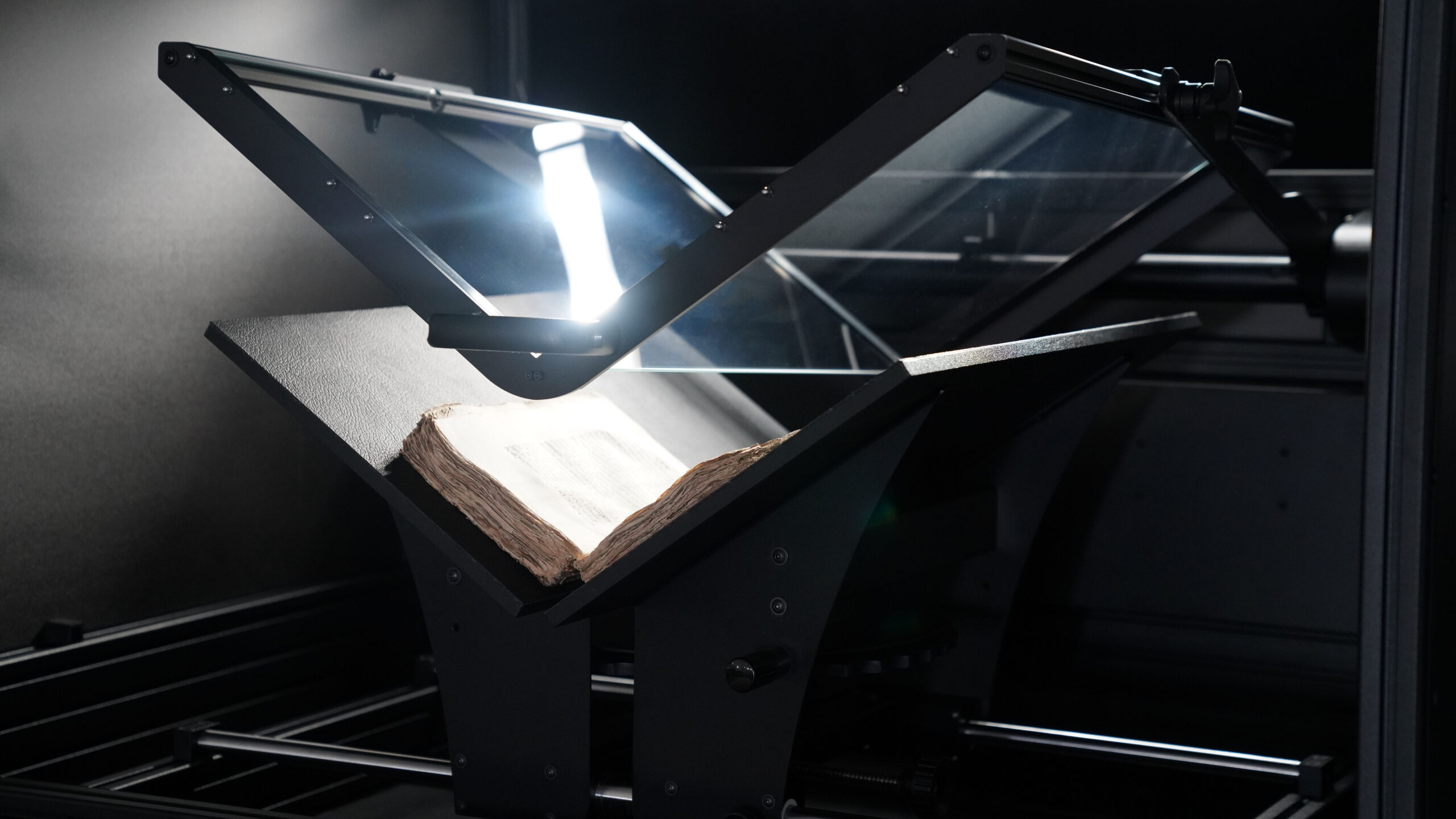 Falcon 还配备了一块V形玻璃板,可以通过弹簧系统手动轻柔地放置在图书的双页上。这使得表面绝对平坦,结合高性能传感器、施耐德-克鲁兹纳赫(Schneider-Kreuznach)精密镜头、LED照明和菲涅尔透镜,确保了最佳且忠实的扫描结果。毋庸置疑,该玻璃板具有防眩光功能。