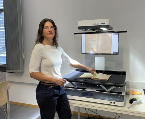 “但是,将其运到并安装在我们的用户阅览室就已经带来了挑战:扫描仪装在一个木箱里,进不了我们的门。不过,技术服务部门的同事们知道如何解决,他们找来了一辆市政装载机。在它的帮助下,我们成功地通过阅览室的窗户将扫描仪安全地卸到其安装位置,”市档案管理员报告说。