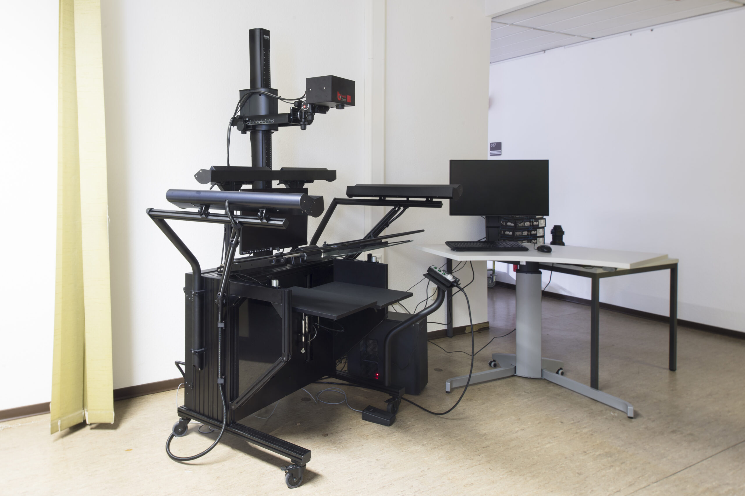 Archive Pro 上部的相机滑块和灯具是质量的保证,而下部的玻璃板和倾斜式书托则确保卓越的扫描效果。与 book2net 生产的其他扫描仪一样,Archive Pro 的倾斜式书托能够补偿书籍的重量和厚度,确保双页书籍的表面在扫描过程中始终保持平整。Archive Pro 还具有特殊功能:它的两个侧面可以单独控制。此外,倾斜式书托可以从底部向上移动抵住玻璃板,从而节省时间和精力。