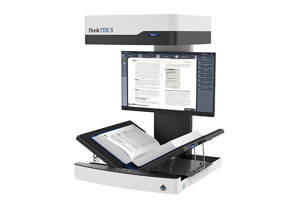 使用我们的 BookTEK 系列高架式图书扫描仪,实现完美的扫描效果。您的书籍轻柔地置于V形支撑架中,无论大小或类型,都能确保清晰的扫描结果,且无损坏风险。精确与细致,尽在一机。