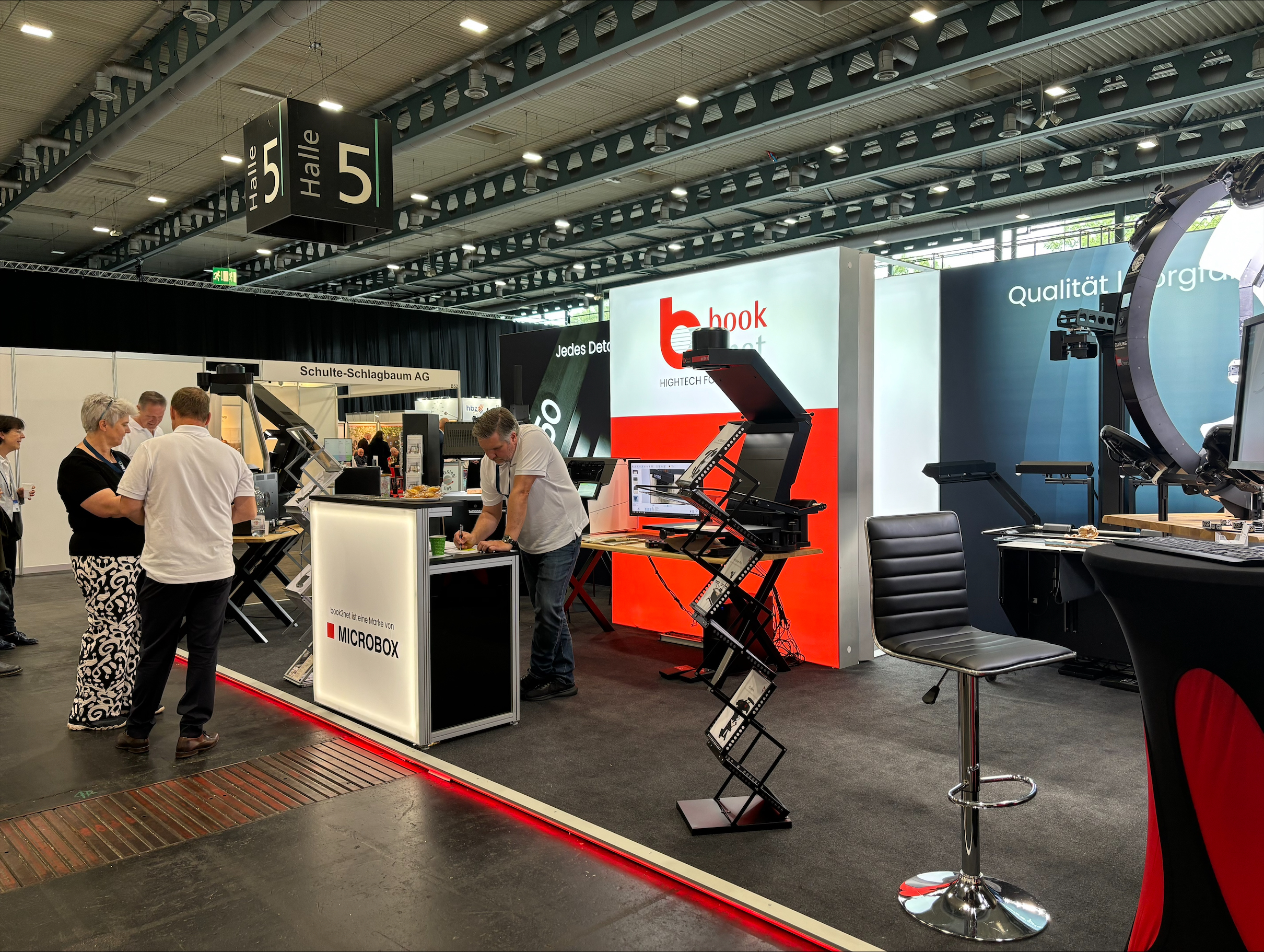我们现场展示的扫描系统反响非常好:其操作简便性、快速扫描能力、无磨损硬件、静音运行以及在图像质量上远超线阵扫描系统的优势,都令人印象深刻。因此,除了惊叹的目光和富有启发性的交流外,我们还收到了大量具体咨询,这意味着未来将有更多 book2net 技术应用于图书馆的阅览室和幕后,造福更多人。