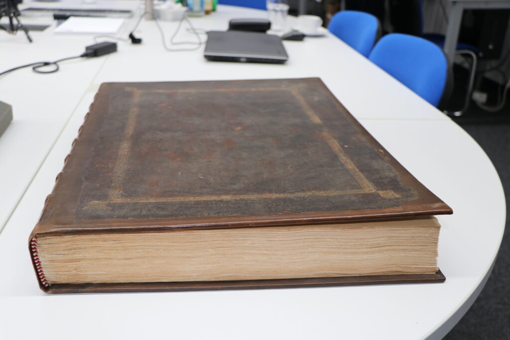 索林根刀具博物馆馆长西克斯特·韦茨勒博士在使用Bookeye 4 V1A C35书籍扫描仪