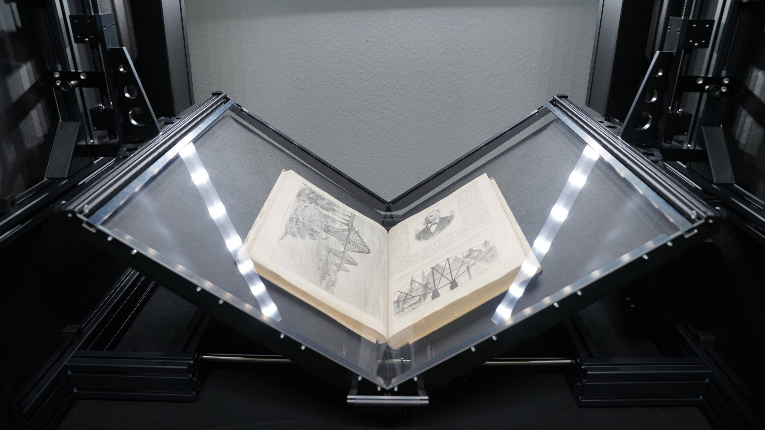 专业的A1幅面数字化系统,具有可变V形压板、灵活的摄像头和灯光控制,适用于保护性数字化