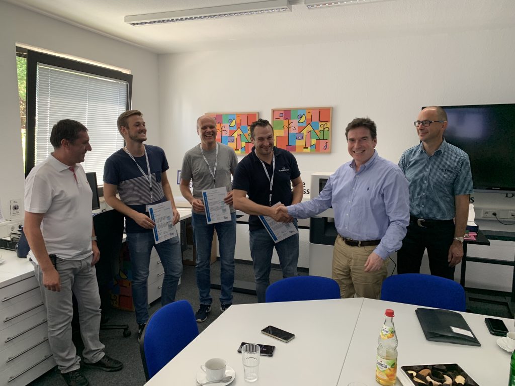 位于巴登-符腾堡州的 Morgenstern AG 自2018年底以来一直是 Image Access 的合作伙伴。此前已经在罗伊特林根和新乌尔姆对销售团队进行了培训,现在技术人员也来到了伍珀塔尔进行参观。技术支持经理 Adrian Musiol 讲解了 WideTEK 平板式大幅面扫描仪,并提供了有关其操作功能的实践见解。随后,首席运营官 Rüdiger Klepsch 颁发了参与证书。